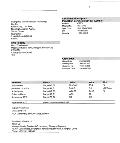 75%的二异辛基琥珀璜酸钠溶液 |